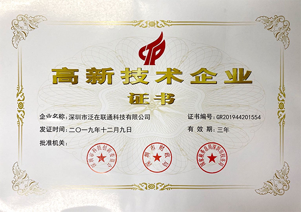 公司已获得国家高新技术企业认证和深圳市高新技术企业认证,截至2019年已获得24项软件著作权,6项正在申请中。 泛在联通,打造广泛存在的互联互通!