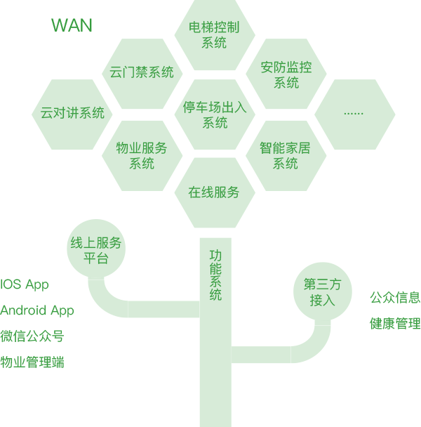 1)提供整体的建筑智能方案,包括各开发商的新住宅项目、物业老小区、商业楼宇、科技园区等;